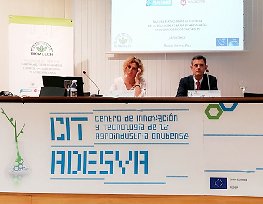 El pasado 18 de Septiembre se celebró la jornada “NUEVAS TECNOLOGÍAS AL SERVICIO DE LA ECOLOGÍA AGRARIA EN ANDALUCÍA: ACOLCHADOS BIODEGRADABLES” en las instalaciones del centro tecnológico ADESVA. CETEC asistió como ponente a la jornada para difundir y presentar los films biodegradables para acolchados desarrollados en el proyecto BIOMULCH. Alejandro Arribas, responsable de I+D de CETEC, explicó a los asistentes los procesos de biodegradación de los films y expuso los beneficios de los acolchados conseguidos: