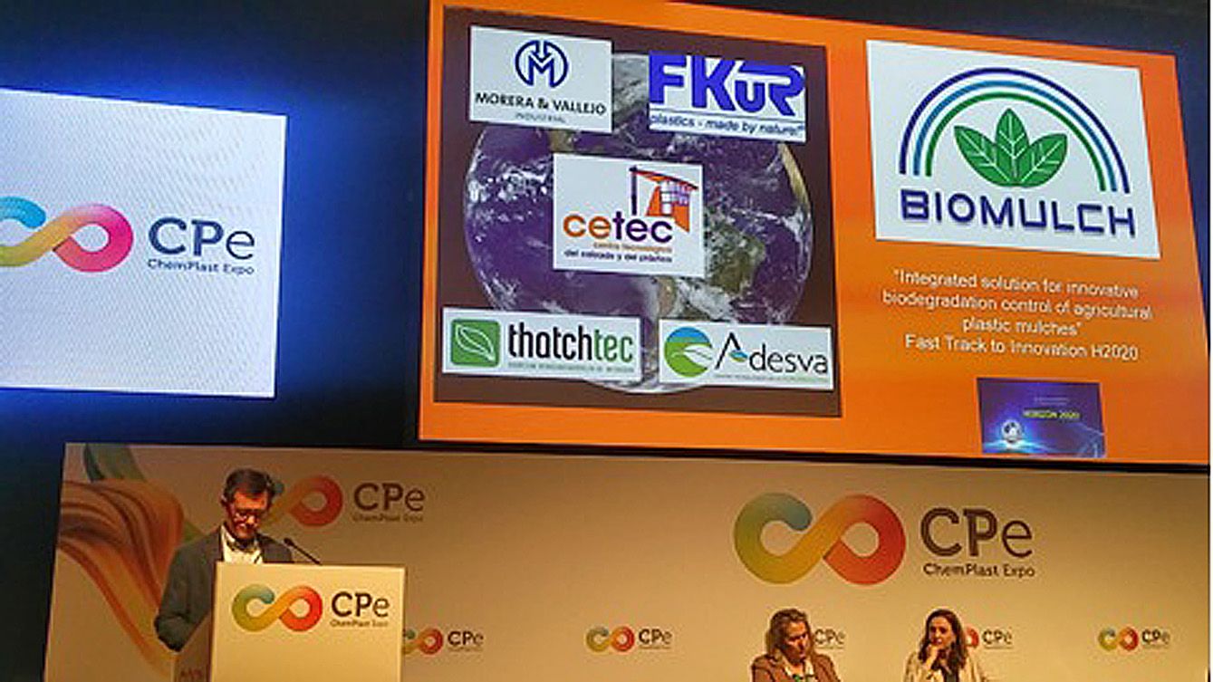 El pasado jueves 9 de Mayo, CETEC presentó los exitosos resultados finales del proyecto BIOMULCH “Integrated solution for innovative biodegradation control of agricultural plastic mulches”. La consecución de un acolchado sostenible para el cultivo de la fresa en la provincia de Huelva, basado en polímeros biodegradables, substancias naturales y una selección de microorganismos. En el Chemplast Congress dentro de las charlas sobre innovaciones para una agricultura sostenible, se expuso el acercamiento diferente al problema de los acolchados en la agricultura por parte de BIOMULCH, los cuales o bien son abandonados en el campo o son difícilmente reciclados. La solución con polímeros biodegradables que una vez cumplida su misión en el campo de cultivo, puede ser biodegradado en menos de 3 meses mediante microorganismos seleccionados. El proyecto ha sido financiado por el programa Fast Track to Innovation del Horizonte 2020 y ha contado con la participación de 5 socios, El Centro Tecnológico del Calzado y del Plástico, Morera y Vallejo Industrial, FKUR, Thatchtec y ADESVA.