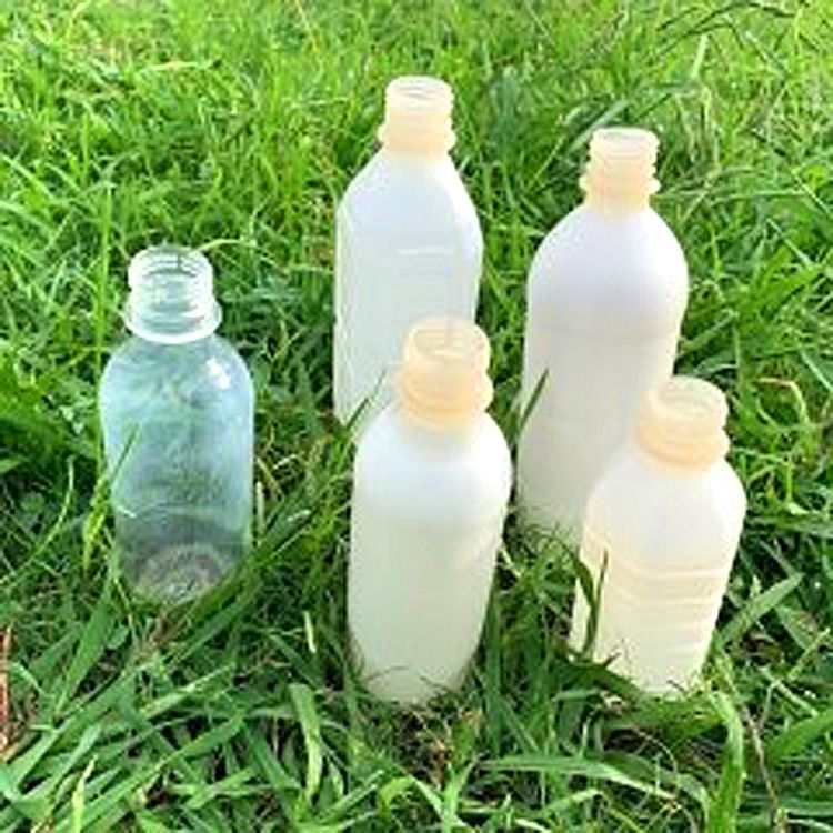 Botella biodegradable (la izquierda es solo PLA, las botellas restantes son modo de PLA + Nanocelulosa)
