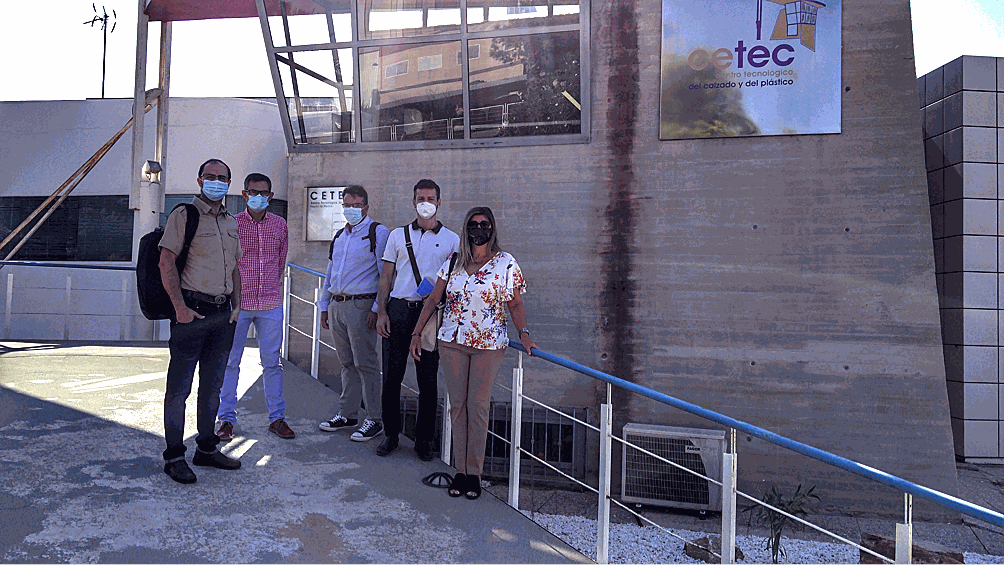 Alejandro Arribas, Responsable de I+D+i del CT del Calzado y del Plástico, ha presentado el proyecto Value-Rubber a los asistentes: Remedios Bermúdez, Presidenta de NEUMATIMUR, Manuel Lorenzo, Secretario Técnico NEUMATIMUR, Eusebio Martínez, Director de la Cátedra FREMM de la UPCT y José Fayos, Investigador Principal del Grupo I+D Electromagnetismo y Materia de la UPCT, el cual también participa en el desarrollo de Value-Rubber.